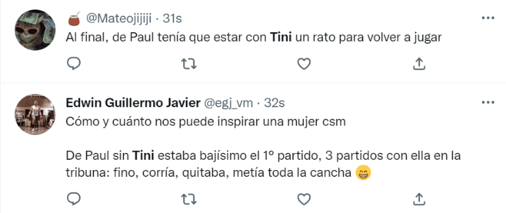 Además de haber estado en el estadio Ahmad bin Ali, también se había dado el lujo de visitar a De Paul luego del choque ante Polonia, en donde el futbolista compartió una fotografía de ambos celebrando el amor. A raíz de ello, varios hinchas sostuvieron en las redes sociales “qué bien le recargaste las energías”, haciendo una comparación a la frase que utilizó el ex Racing para la historia en Instagram y el buen rendimiento que mostró frente a México, los polacos y Australia.