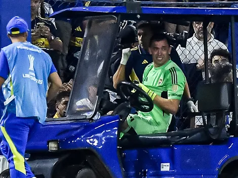El arquero se retiró desconsolado del campo de juego de La Bombonera. "Me rompí la rodilla", aseguró.