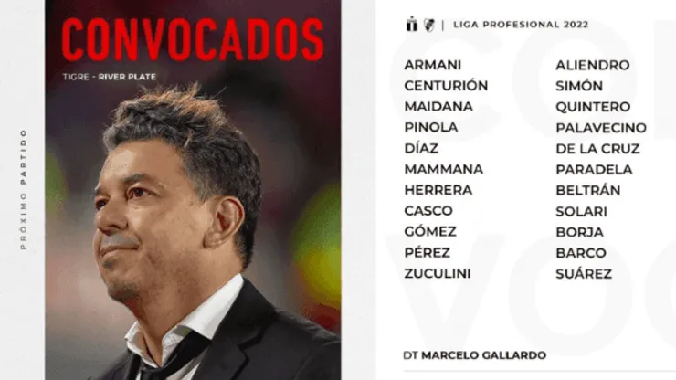 A un día del duelo que tendráRiver ante Tigreen Victoria por una nueva fecha de la Liga Profesional, el club millonariopresentó la lista de convocados para el cotejo y allí hubo varias cuestiones llamativas.Para empezar,Matías Suárez y Milton Cascoestán de regreso tras sus cuadros gripales, donde también se sumónuevamentePaulo Díazdejando atrás el desgarro que lo marginaba de las canchas.