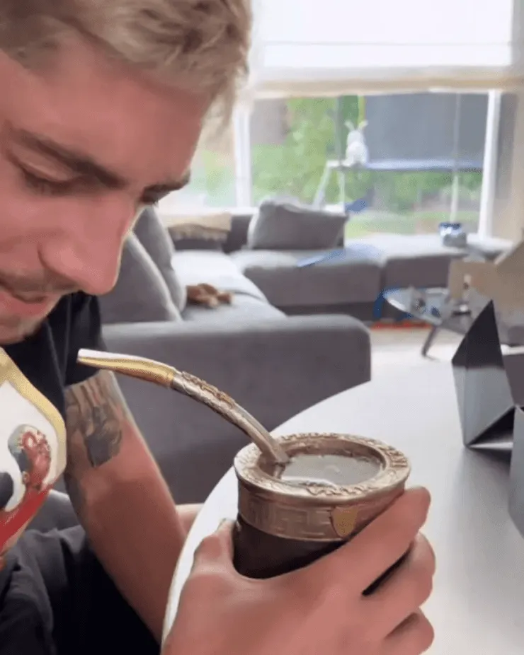 Siendo principal protagonista de los últimos triunfos del Merengue,Federico Valverde está en el centro de la escena desde hace unas semanasy parece no cansarse de esto porque el uruguayoapareció tomando unos mates con un envase en donde se puede ver al millonario grabado en el envase del mismo.