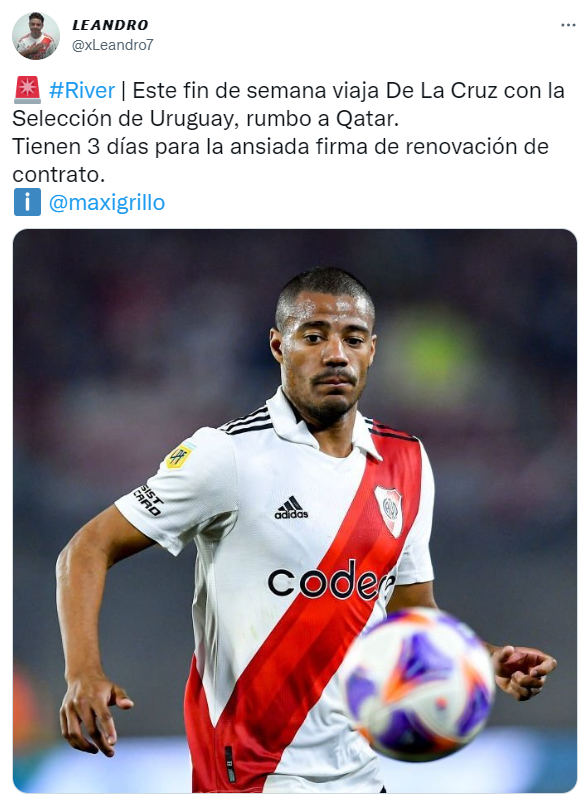 Sin embargo, una última noticia tiene en vilo a todo Núñez. De La Cruz programó su vuelo con la Selección de Uruguay, previo al Mundial de Qatar, para este próximo fin de semana y la dirigencia tiene apenas tres días para poder lograr que el mediocampista firme su extensión de vínculo. ¿Qué pasará de aquí al viernes?