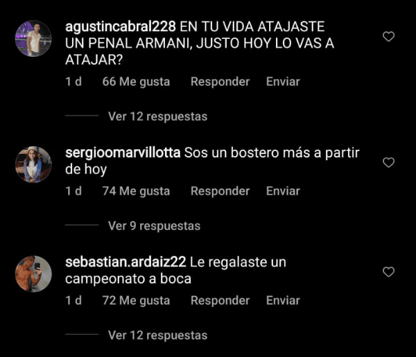 Todo esto se dio en redes sociales y su último posteo, hace una semana por su cumpleaños, no fue la excepción. Incluso, algunos fanáticos de Boca también le agradecieron al golero de la Selección Argentina. Tremendo.