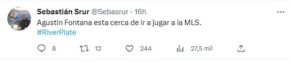 No fue hasta estas últimas horas que se conoció un posible destino concreto para Fontana: el fútbol de los Estados Unidos. “Agustin Fontana esta cerca de ir a jugar a la MLS”, posteó el periodista Sebastián Srur a través de su cuenta de Twitter, sin mencionar la identidad del club pretendiente. Aún así, la operación pareciera estar avanzada para que el delantero, hoy sin lugar con Demichelis, se vaya en lo inmediato para volver a tener minutos en cancha.