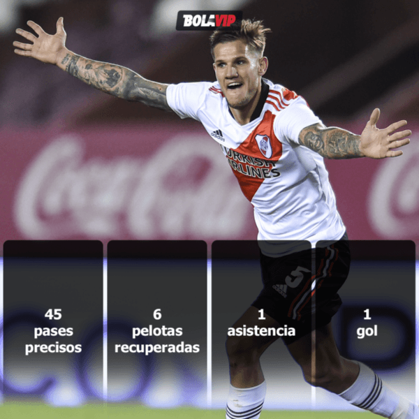 El mediocampista central le aportó mucho más que equilibro al conjunto Millonario. La precisión, los quitesy el criterio para pasar el ataque sintetizan el aporte de Zucu durante el desarrollo de cada encuentro. Esta noche abrió el marcador con un remate desde afuera del área, luego asistió a De La Cruz para el 2 a 0 parcial y recuperó 6pelotas para volver a tener rápidamente la tenencia. Una de las figuras.