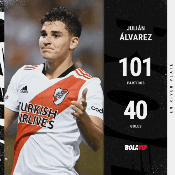 Si nos detenemos en sus representacionesoficiales, Álvarez acumula 40 goles en 101 partidos en River Plate. Los mismos se dividen en 26 por torneos locales, 6 en copas domésticas y 8 en Libertadores. ¿Alcanzará los 50 antes de viajar a Europa? Su olfato y ambición lo garantizarían en el corto plazo…
