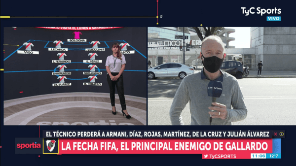 Juan Cortese, en la mañana de TyC Sports, dio indicios de los posibles nombres que podrían meterse en el once inicial del Millonario para viajar a Junín y habría presencia juvenil en la defensa: Enrique Bologna; Alex Vigo, Tomás Lecanda, Bruno Zuculini, Milton Casco; Enzo Pérez, Enzo Fernández, Santiago Simón o Agustín Palavecino, Jorge Carrascal o José Paradela; Matías Suárez y Braian Romero.