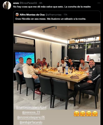 Lógicamente, por más que solo se trate de una reunión entre colegas y amigos, muchos hinchas de Estudiantes se entusiasmaron en redes, así como también se despertó la incertidumbre en los de River por verlo a su capitán allí. Todo esto, pese a que Enzo Pérez hace días confirmó que solo “piensa en River“.