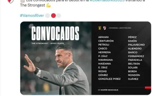 Para dicho encuentro, y también para transitar el resto de la fase de grupos, el Millonario anunció la lista de buena fe con la sorpresiva inclusión de joyas como el “Diablito” Echeverri, hoy de gran presente en la sub-17 de la Selección Argentina. Finiquitando la nómina, un inconveniente físico generó un cambio de planes que ya padece el DTpensando en el estreno.