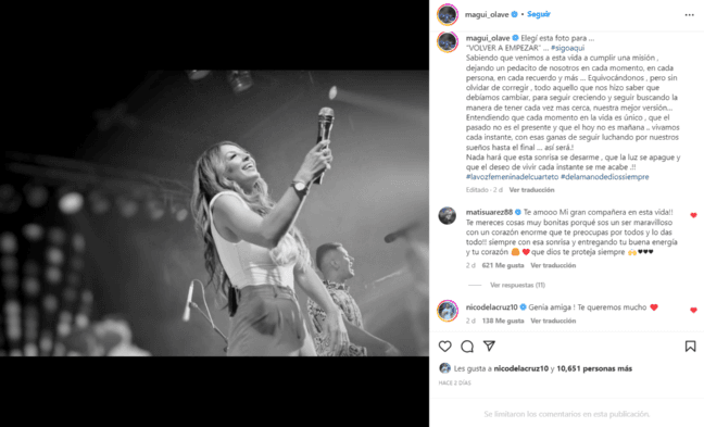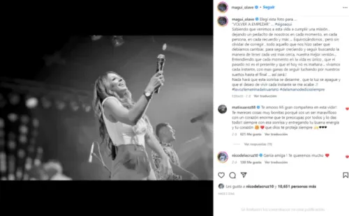 “Volver a empezar”, escribió ella en un posteo de Instagram, acompañado de un emotivo y positivo mensaje. El futbolista de River, que había vivido todo a la distancia,le dejó un hermoso comentario que rápidamente se llenó de interacciones.
