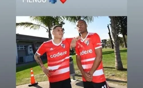 “¡No traten de entender esta amistad! Te amo hermano mío” publicó el mediocampista uruguayo junto a una foto en el River Camp posando junto aJuanfer con la camiseta alternativa de River, que fue utilizada para la presentación de la misma.
