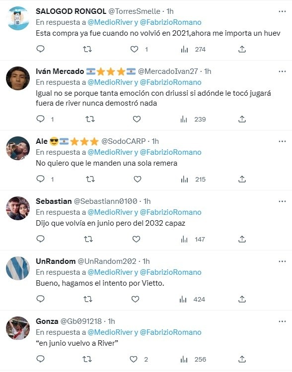 Como era de esperarse, la reacción de los hinchas de River no fue positiva y se descargaron contra el delantero, manifestando la falta de ilusión para su regreso en el corto plazo. Sin embargo, con apenas 27 años de edad, uno cree que Driussi tiene mucho para dar fuera de Argentina.