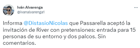 Sin embargo, según cuenta el periodista Nicolás Distasio, la mediación para que el Kaiser acepte la invitaciónno fue sencilla. A sabiendas del posible tumulto que podría generar su mera presencia, Passarella habría solicitado “ciertas protecciones” para ingresar a la cancha de La Banda, entre ellas garantíasde seguridad, dos palcos y 15 entradas para personas de su entorno.