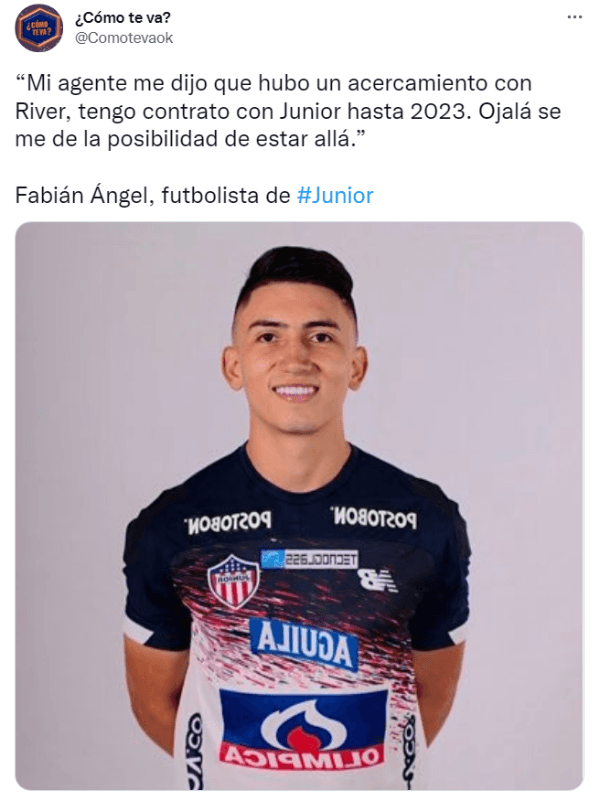La posibilidad de sumarse al elenco de “Napoleón” parece ser una realidad y el propio mediocampista confirmó los primeros contactos de la Secretaría Técnica del Millo para poder iniciar las negociaciones. “Mi agente me dijo que hubo un acercamiento con River, tengo contrato con Junior hasta 2023. Ojalá se me de la posibilidad de estar allá. Sería muy feliz para mí representar a un club como River”, le dijo Ángel a Marcelo Benedetto. Por último, Fabián reveló que Teo Gutiérrez está haciendo fuerzas para acercarlo a Núñez. “Teo me contó mucho de River acá en Junior, me dijo que es un gran club”, cerró. ¿Se pondrá la banda roja?