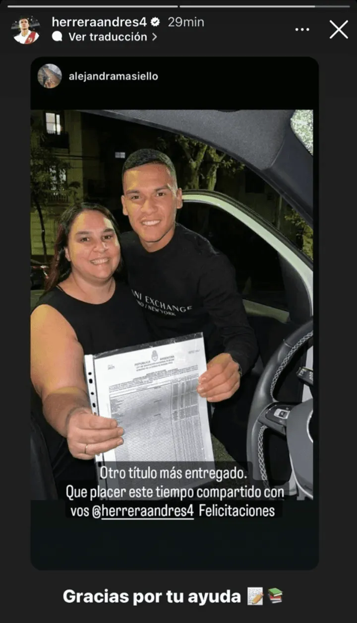 El mismo, es el lateral derecho de 24 años, Andrés Herrera, quienretomó los estudios a fines de 2021, cuando todavía era jugador de San Lorenzo, y que debido a los consejose insistencia de su familia, decidió rendir los exámenes que tenía pendientes y se puso al día con los estudios, demostrando que se puede estudiar mientras se juega en el máximo nivel.