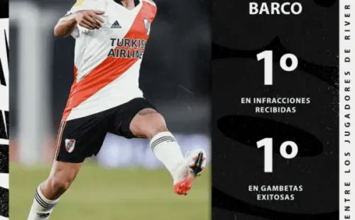 Si analizamos las estadísticas generales de Barco en el torneo, es el jugador que más faltas recibió en River (10) y el tercero en el ranking integrado por los futbolistas de todos los clubes. En promedio, recibe una falta cada 63minutos. Asimismo, es el jugador del Millonario que más gambetas completó, con 5 regates. Cuando termine de adaptarse al torneo, puede ser un dolor de cabeza aún mayor para sus rivales.