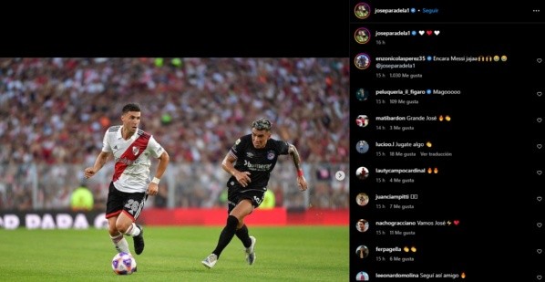 Si bien el primer tiempo no fue lo mejor del equipo,José Paradelasacó la cara por sus compañeros y generó chances de gol que, lamentablemente para el Millonario, no terminaron en el fondo de la red. Sin embargo, en el vestuario le reconocen lo hecho el pasado domingo como figura del partido yEnzo Pérez le comentó una publicacióncon una réplica que causó carcajadas en redes sociales.