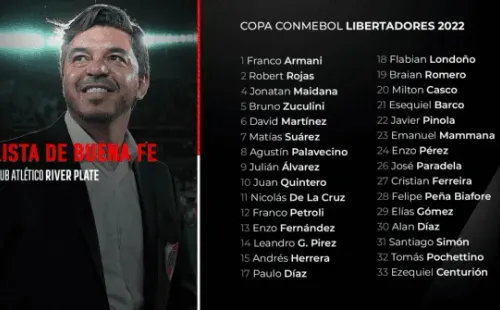 Ezequiel Centurión y Franco Petroli se disputarán la titularidad para jugar ante Colo-Colo, aunque el primero de estos corre con ventaja tras haber atajado ante Platense en el reciente encuentro de la Copa de la Liga Profesional. En total son 33 los inscriptos por River para la fase de grupos y, hasta el momento, no podrá contar con tres de ellos.