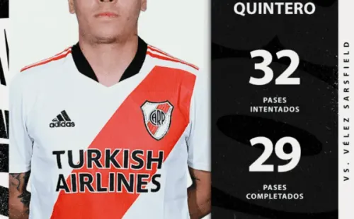 Juan Fernando Quintero no jugaba con la camiseta de River desdeel 11 de marzo de 2020, cuando el equipo de Marcelo Gallardo goleó8 a 0 aBinacional por la Copa Libertadores. Esta jornada, el colombiano ingresó a los 16 minutos del segundo tiempo y no decepcionó: la pidió, hizo jugar al equipo y mostró todo su talento. Sigue vigente.