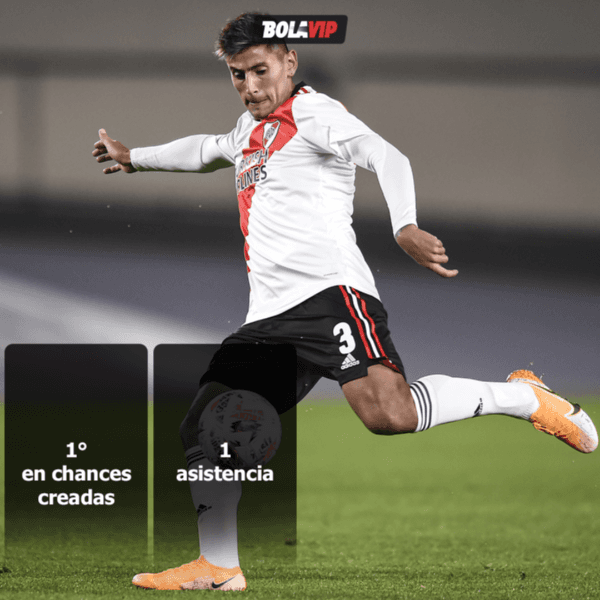 El exlateral izquierdo de Godoy Cruz es una garantía de los ataques de River. Dueño de una enorme pegada -a tal punto que ya se ocupa de ejecutar los tiros libres- y constancia para pasar al ataque, esta noche fue el jugador que más chances creó (2) con tan solo 25 minutos en cancha. Además, asistió a Braian Romero para el empate del local y ya suma 6 pases-gol en sus últimos 12 partidos en El Millonario. Pieza fundamental.