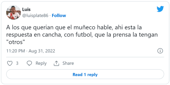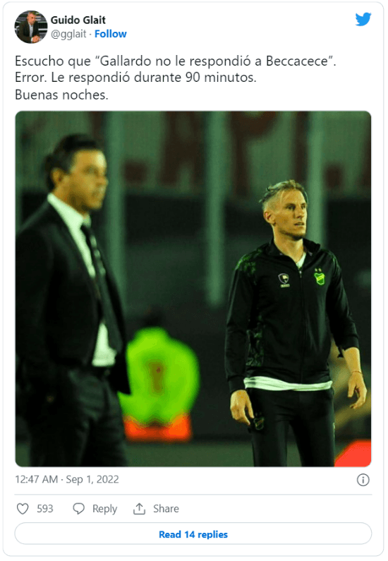 Los hinchas de River coincidieron en que Gallardo contestó donde había que hacerlo: “En la cancha”. Los tres goles de Pablo Solari y el tanto de Lucas Beltrán fueron suficientes para los simpatizantes. Tal es así que ambos directores técnicos fueron tendencia.