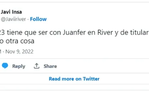 Teniendo en cuenta que le costó tener continuidad por distintos factores, el pueblo riverplatense reclamó más minutos para él en 2023. Para muchos, el 10 debe ser titular en el equipo que arme Martín Demichelis en la próxima temporada. ¿Escuchará el nuevo DT?