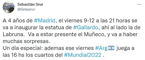 El proyecto de la estatua que comandó Carlos Trillo, junto a la mano de la escultoraMercedes Savall, será una realidad este viernes 9 de diciembre cuando la Selección Argentina ya haya disputado su encuentro de cuartos de final del Mundial de Qatar ante los Países Bajos. Y, por supuesto, contará con la presencia del mismísimo Gallardo.