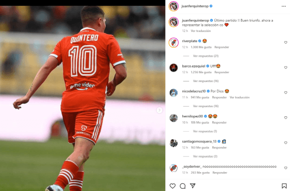 En ese contexto, una serie de mensajes de Quintero en su cuenta de Instagram empezaron a causar revuelo entre los hinchas y todas las opiniones fueron volcadas en Twitter. “Último partido!! Buen triunfo, ahora a representar la selección”, escribió el volante cafetero. La primera oración impacta, claro, pero la aclaración posterior indica que se va con su combinado nacional para la próxima fecha FIFA.