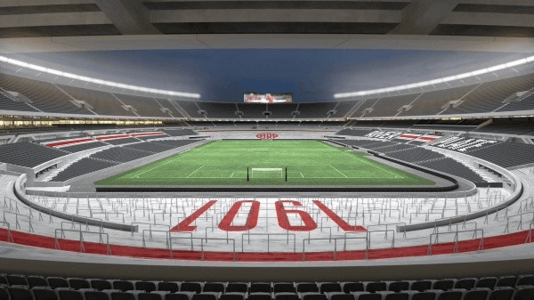 Si bien el gris seguirá siendo el color predominante en las butacas, ahora el rojo aparecetantoen la sigla CARP como en el 1901 (año de fundación), sumado al que ya estaba en la platea media. Ya hay imágenes para ver cómo quedará el estadio.