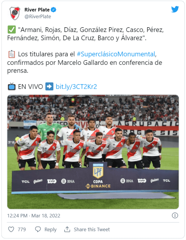 De esta manera, River enfrentará a Boca con los mismos intérpretes que vienen de golear a Gimnasia. Además, Juanfer Quintero y Agustín Palavecino, dos que podían meterse en el XI, deberán esperar su chance en el banco de suplentes.