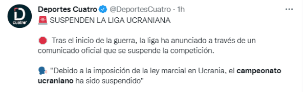 El colombiano firmó su contrato hace tan solo unos días y el desarrollo de su nueva liga podría correr cierto riesgo en caso de agravarse el conflicto bélico.Así sucedió con el campeonato ucraniano, el cual fue suspendido en las últimas horas debido a la imposición de la ley marcial en el marco dela intervención militardel ejército rusoen Donetsk y Lugansk.