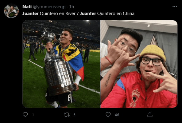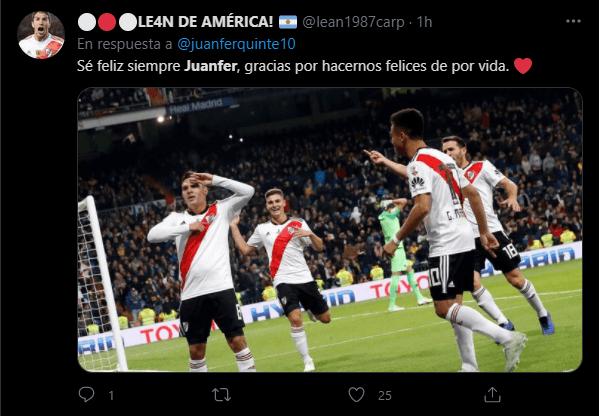 Igualmente, no todo quedó ahí, ya que también fueron muchos los que le reclamaban a Quintero que regresara a River o que, simplemente, le agradecían por lo hecho cuando representó al equipo dirigido por Marcelo Gallardo.