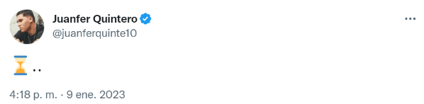 Ahora que Quintero no tiene equipo, se volvió a hacer presente en las redes sociales, donde en su cuenta de Twitter realizó una publicación con un emoji de un reloj de arena y puntos suspensivos. Los hinchas de River comenzaron a sacar conjeturas, ya que el tuit fue publicado minutos después de que Flamengo oficializara el precontrato con Agustín Rossi, que dejará de atajar en Boca.