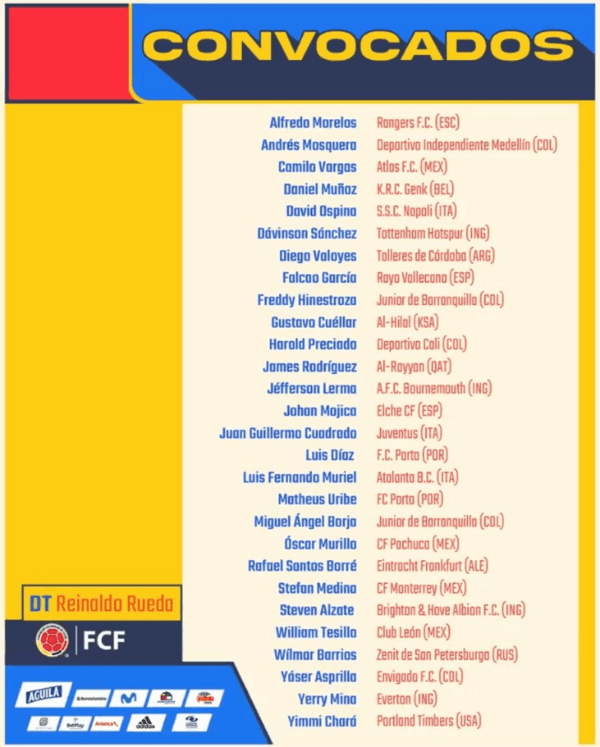La lista de Colombia para las Eliminatorias