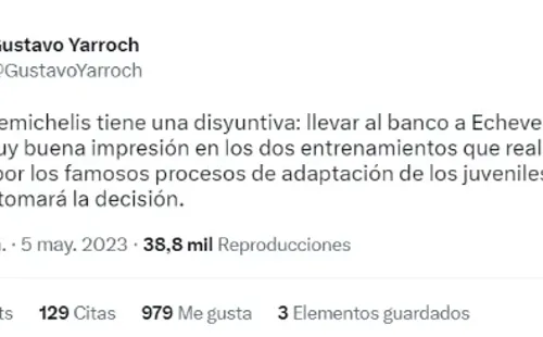 El entrenador empieza a tomar decisiones con el armado del equipo y también con la lista de convocados. Con todos los hinchas atentos a cada novedad, el periodista Gustavo Yarroch dio a conocer que el DT tiene “una disyuntiva” importante.