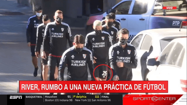 Resulta que esta mañana, cuando River iba a realizar el primer turno de los entrenamientos en la pretemporada, la cámarade ESPN captó a los jugadores saliendo del hotel rumbo al micro que los lleva al predio donde realizan las prácticas, y allí se vio que Carrascal ya no estaba usando la 10 en su vestimenta, sino que tenía la 25 en su short negro de River.