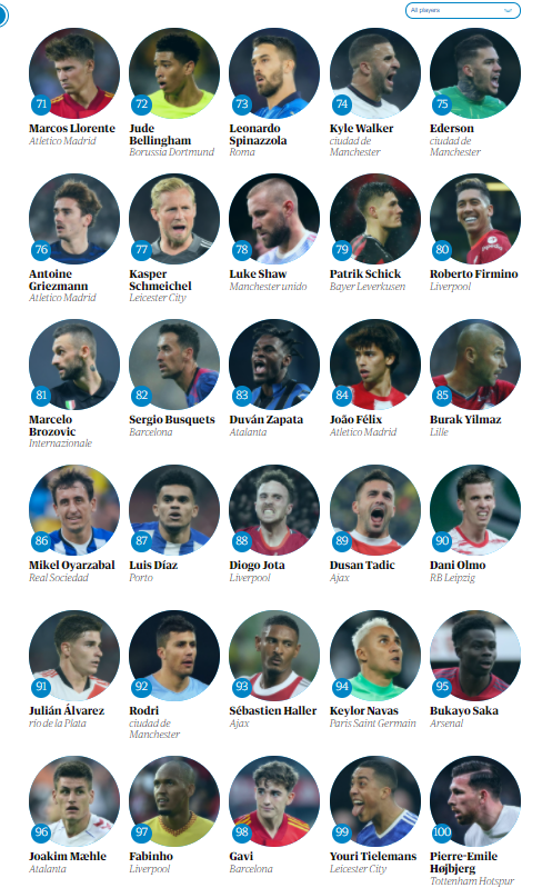 Por ahora, sólo están disponibles los últimos 30 de la lista, pero el diario de Reino Unido irá soltando poco a poco en su portal web el Top 100. Di María, Lionel Messi y Dibu Martínez prometen aparecer entre los primeros 70. ¿Habrá más sorpresas?