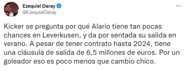La falta de minutos del oriundo de Tostado en el Bayer Leverkusen es un problema que atraviesa el jugador prácticamente desde que llegó y, pese a haber tenido buenos pasajes goleadores, en Alemania dan prácticamente por hecho que dejará el “club de las aspirinas” en junio próximo. “Es probable que Lucas Alario (29 años, contrato hasta 2024) deje el Leverkusen en verano. Su partida se da por segura”, informóKickeren las últimas horas.