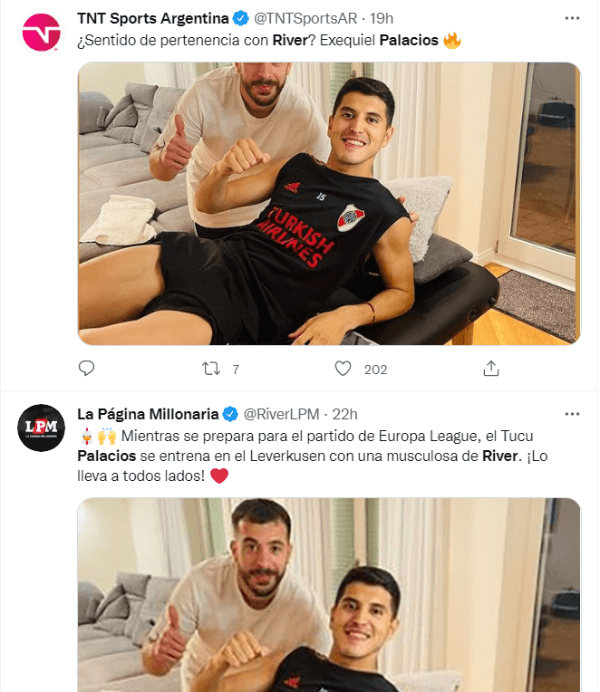 El nombre de Exequiel Palacios volvió a viralizarse en las redes por un posteo que realizó el propio futbolista de las “Aspirinas”. A pesar de jugar en el club alemán, el “Tucu” se mostró llevando la indumentaria de River en una de sus sesiones de entrenamiento y los hinchas del Millo se volvieron locos en redes por el gesto del jugador.