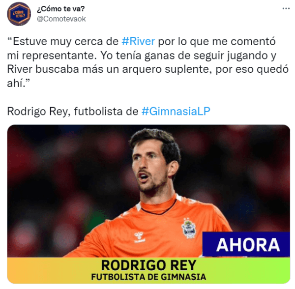 Una de las figuras que dejó la primera jornada del certamen estuvo presente en el Cilindro de Avellaneda. Rodrigo Rey, arquero de Gimnasia, le atajó un penal clave a Javier Correa y el Lobo se pudo llevar un punto en condición de visitante para iniciar el primer semestre del 2022 sumando puntos. El nombre del defensor de los tres palos en el Tripero no solo fue mencionado por su gran actuación ante la Academia, sino por la posibilidad de que llegue a River en diciembre al finalizar su contrato.