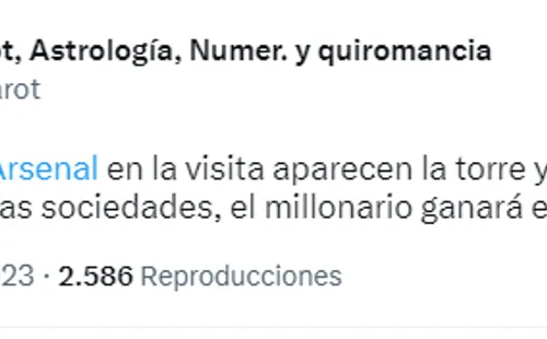 En su cuenta de Twitter, el tarotista@magiandtarot, dio su predicción para el partido, en el que asegura que los locales se quedarán con la victoria: “River vs Arsenal en la visita aparecen la torre y la luna. En el local predominan las sociedades, el millonario ganará el partido”.