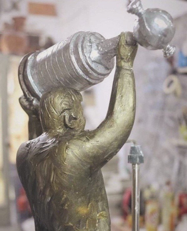 Por ahora, no recibieron el aval de la Comisión Directiva para colocar el ensamble final que sostendrá a la escultura de más de 7 metros de altura que homenajea a Gallardo. Por lo que, hasta que D’Onofrio no de el visto bueno para colocarla, quedará en stand by.