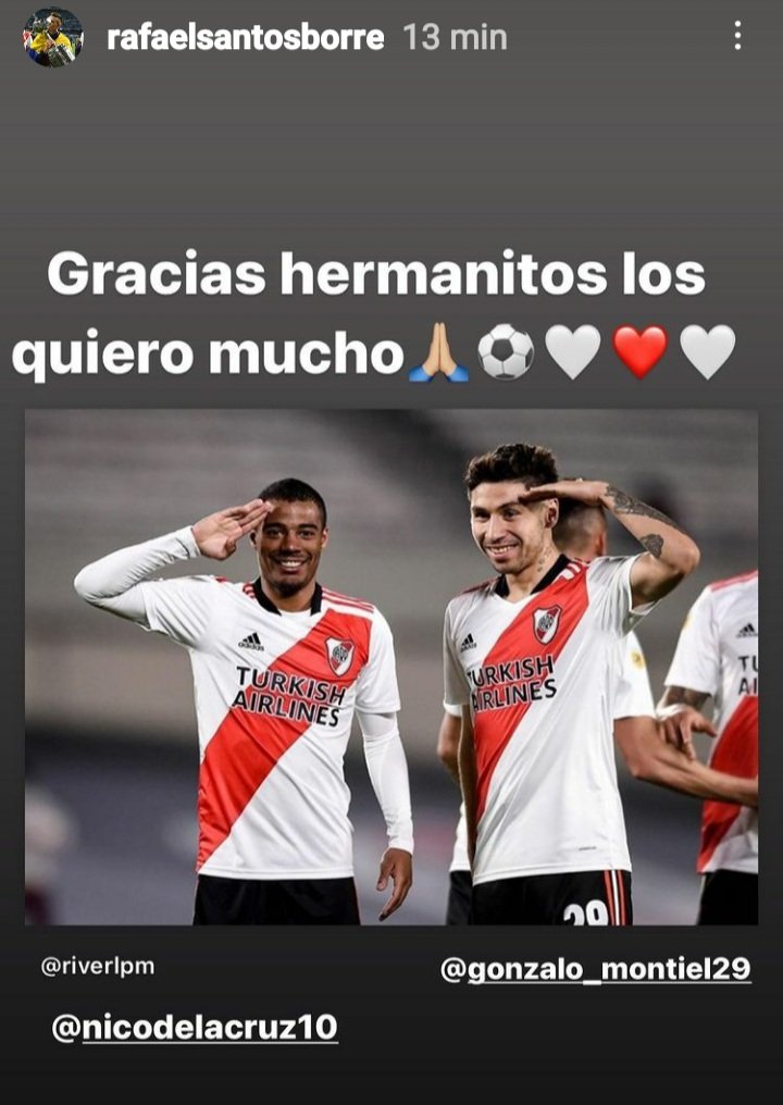 Borré por su parte, ya se encuentra en el Frankfurt de la liga alemana, siendo este su segundo paso por el fútbol europeo luego de su recorrido previo a River en el Atlético de Madrid y el Villarreal. Y desde su nuevo hogar, le agradeció en Instagram a sus ex compañeros: “Gracias hermanitos, los quiero mucho“, posteó el colombiano.