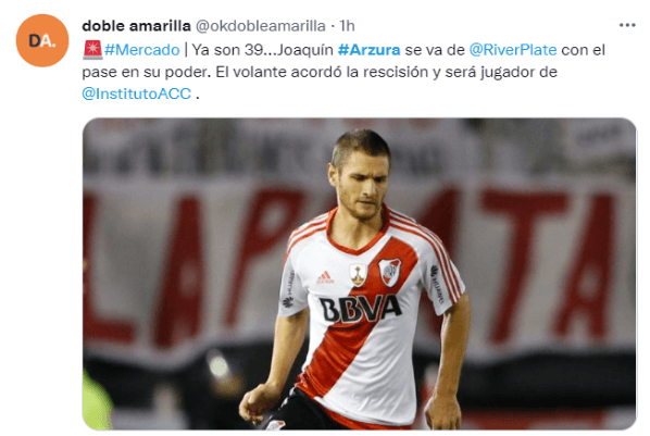 Mientras tanto, el mercado de pases para el Millonario parece cerrado y los dos nombres que llegaron fueron Enzo Fernández y Braian Romero. No obstante, hoy se concretó una nueva baja en Núñez después de que el Muñeco le bajara el pulgar. Joaquín Arzura firmó su rescisión de contratocon River después de navegar por España y Uruguay, y todo indica que irá a Instituto de Córdoba tras su paso por Huracán.