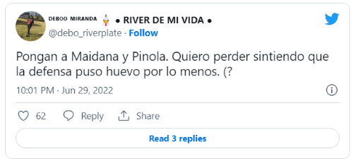 El nombre más pedido por los simpatizantes fue el de Jonatan Maidana, algo que no sorprende tras el bajo nivel de Paulo Díaz y David Martínez. Muchos consideran que la experiencia del zaguero puede ser importante para ordenar a la defensa que ayer sufrió demasiado.