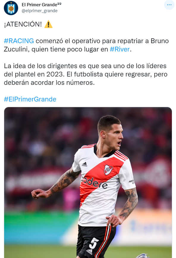 “El mediocampista que se encuentra enRiver, ya le hizo saber a las personas con las que dialogó que siRacingacepta abonarle un salario similar al que percibe en Núñez, pegará la vuelta. Y como se liberarán de algunos contratos elevados, no es descabellado que se produzca su regreso”, escribió el portal partidarioEl Primer Grandepara dar a conocer el interés que existe por parte de la Acadé para tener de nuevo al mediocampista. Operativo en marcha.