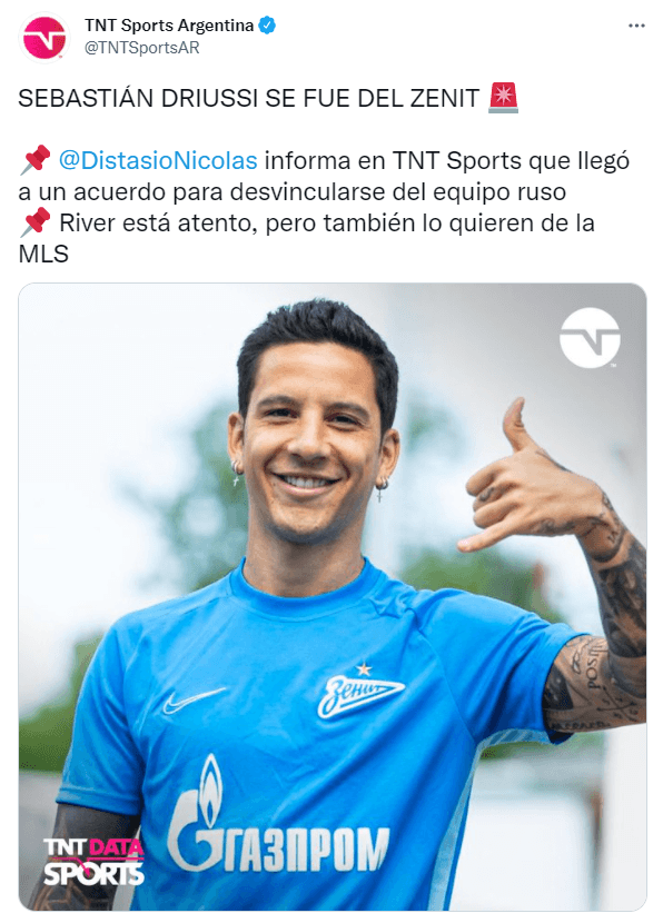 Con dos incorporaciones en el bolsillo, desde Núñez avisaron que no harían más movimientos en el mercado por la situación económica. No obstante, un viejo anhelo de Gallardo volvió a surgir en el día de hoy. Según informaron en TNT Sports, Sebastián Driussi rescindió su contrato con el Zenit de Rusia y será jugador libre para decidir su futuro. ¿Lo llamarán?