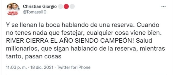 Como cada vez que se define algún torneo en el fútbol argentino, las redes sociales volvieron a jugar su papel. Esta vez, la ocasión fue el último título en juego del año que River y Colón definieronen Santiago del Estero por el Trofeo de Campeones.