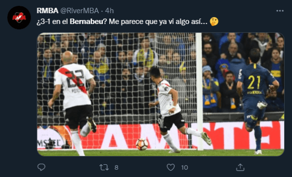 Entre todas estas coincidencias ocurridas entre un partido y otro, al margen de los comentarios de no comprender la insólita remontada que sufrió el PSG y los lamentos por la eliminación de Messi de la Champions, también las redes estuvieron plagadas de hinchas de River haciendo chistes y memes sobre las coincidencias de este encuentro y la recordad final ganada a Boca.