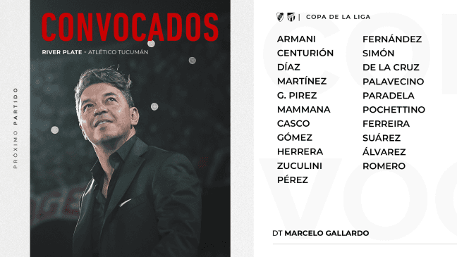 De esta manera, el equipo para recibir al último de la zona sería el de gala: Franco Armani; Andrés Herrera, Paulo Díaz, David Martínez, Milton Casco; Santiago Simón, Enzo Pérez, Enzo Fernández, Nicolás De La Cruz; Matías Suárez y Julián Álvarez.