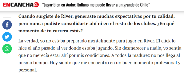 Está claro: para jugar en un club tan importante se necesitan muchísimas cosas además del talento. Sin embargo, la declaración de un exfutbolista del Millonario admitiendo que “no estaba preparado mentalmente” para jugar en el club no deja de ser llamativa.